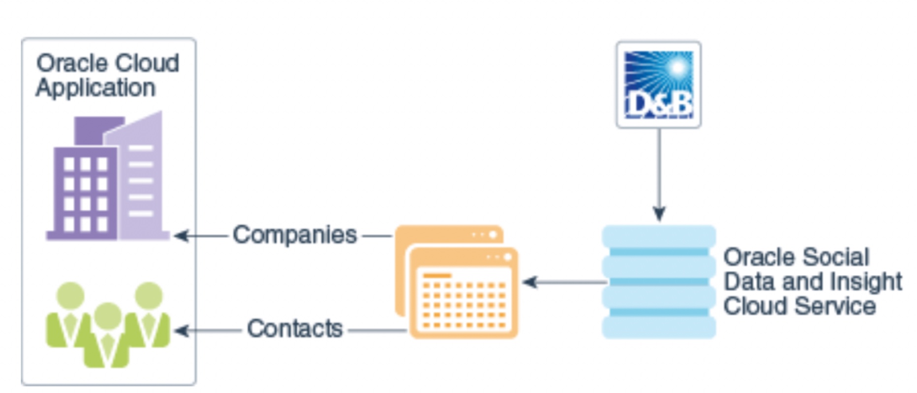 | Automated integration between DaaS (Social Data and Insight Cloud) and Oracle Cloud applications (Engagement Cloud, and Marketing Cloud). Out-of-the-box mappings are provided. | Plan a governance process to refresh D&B hierarchy periodically to keep the D&B data up-to-date. |