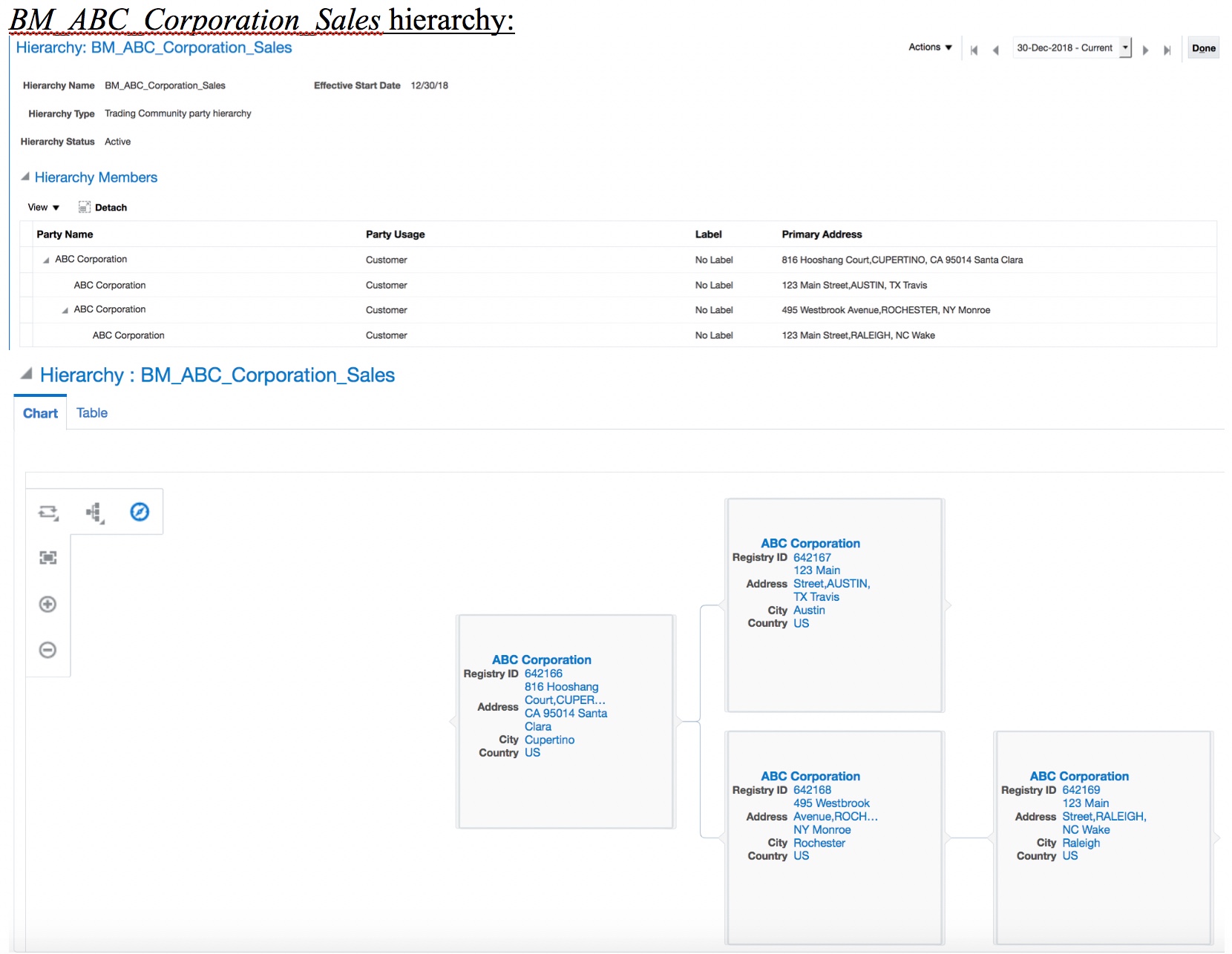 You can create two hierarchies, one for Sales team (“BM_ABC_Corporation_Sales”), and another one for Service team (“BM_ABC_Corporation_Service”). These hierarchies can co-exist as well. Note that, how you are leveraging these hierarchies for downstream and other business processes is up to the corresponding business requirement. Only the hierarchies are defined and managed within Oracle Fusion Cloud. These hierarchies can be exported and passed on to other applications as needed.