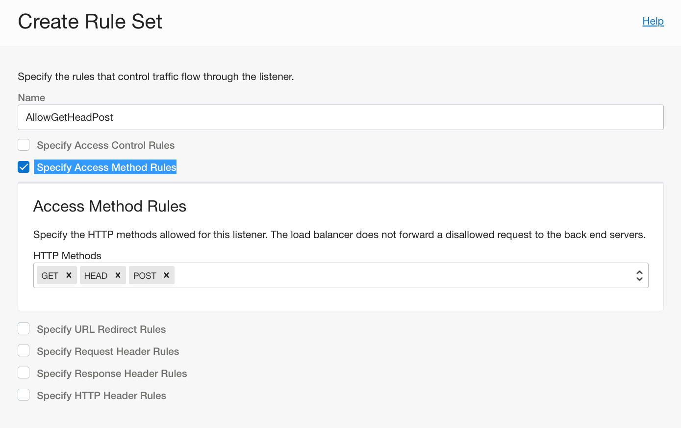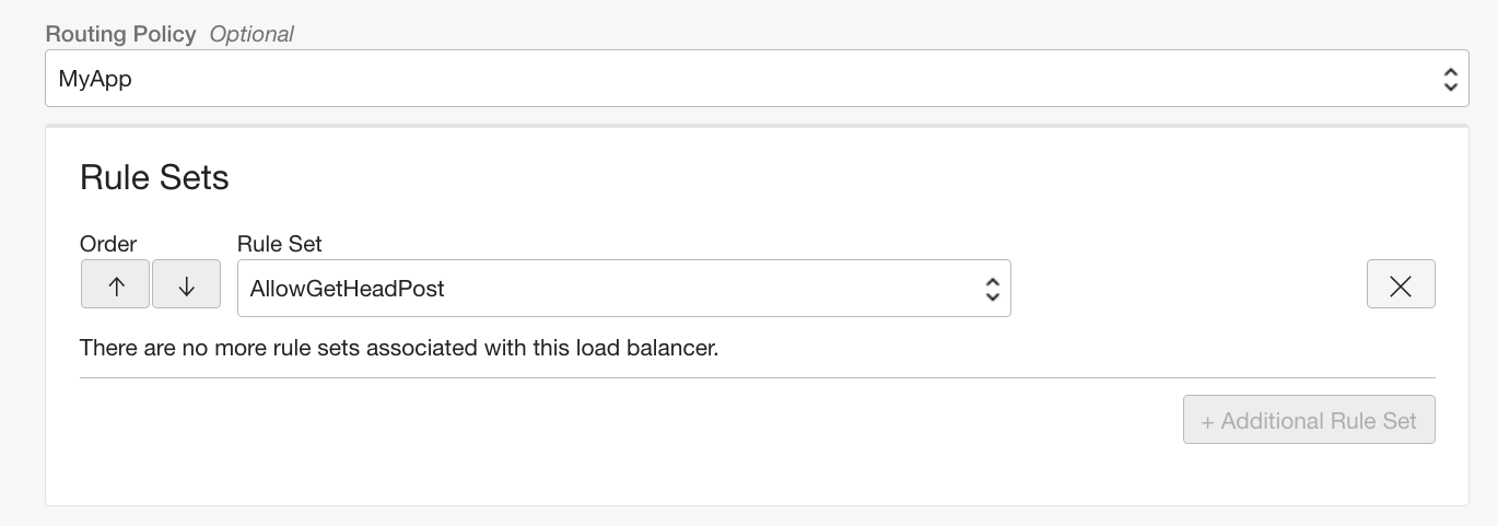 A Rule Set allows you to apply some simple controls to the load balancer. We’re going to use that to only allow GET, HEAD, and POST to our application.