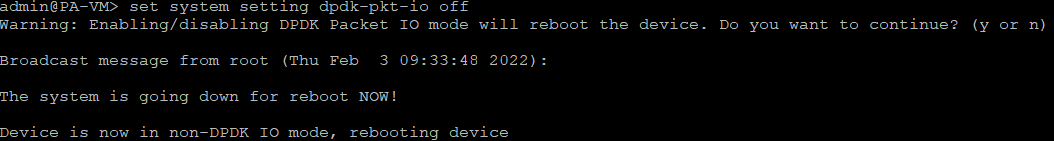 2.3 Disable the DPDK mode: set system setting dpdk-pkt-io off