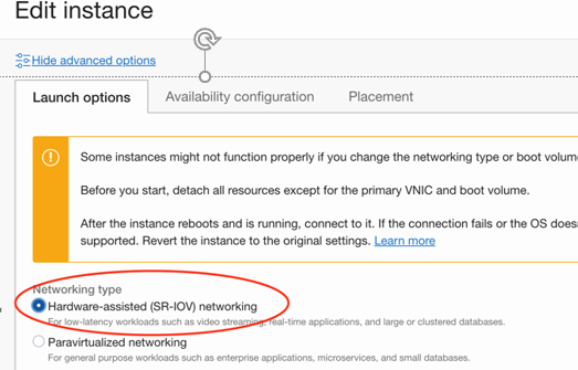 2.6 Edit the PA instance and change the networking mode to SR-IOV: