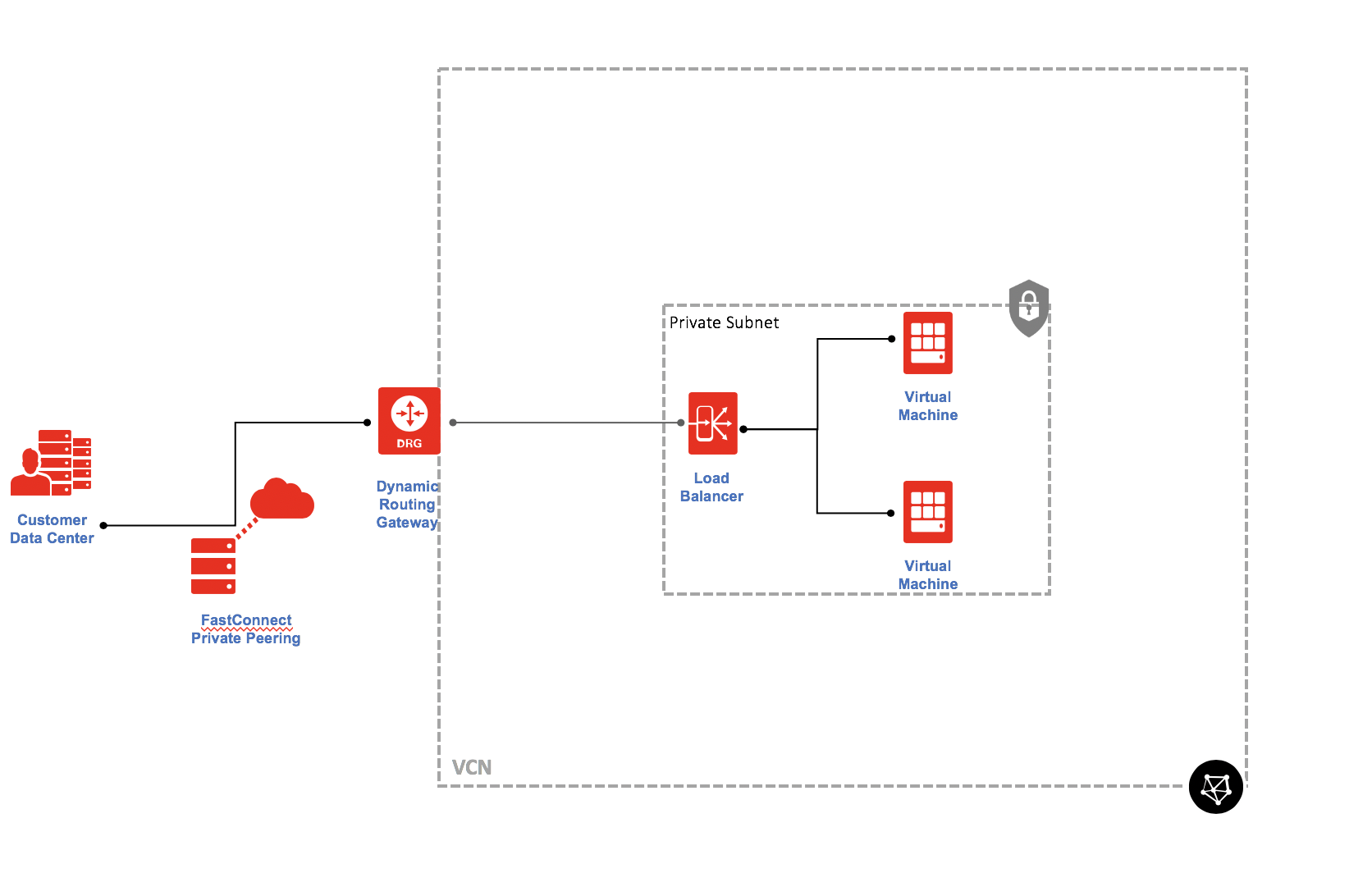 In the above figure, Fast Connect private peering is used. An alternative could be IPSec VPN.