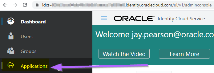or directly from IDCS Admin Console URL: https://idcs-<your idcs>.identity.oraclecloud.com/ui/v1/adminconsole/