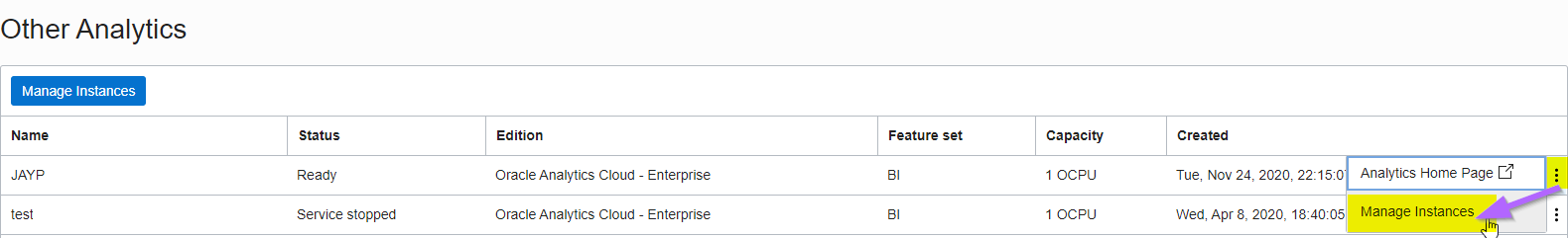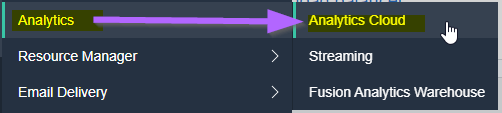 To get OAC Resource name: Analytics -> Analytics Cloud -> Select Region -> Select Compartment -> (may have to select Other Analytics)