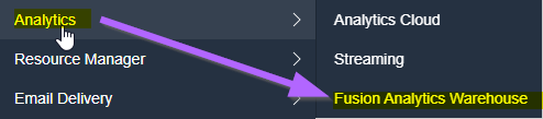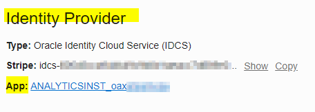 To get FAW Resource Name: Select Region -> Analytics -> Fusion Analytics Warehouse -> Select Compartment -> Click on Instance -> Click on Additional Details tab -> under Identity Provider -> App = Resource Name