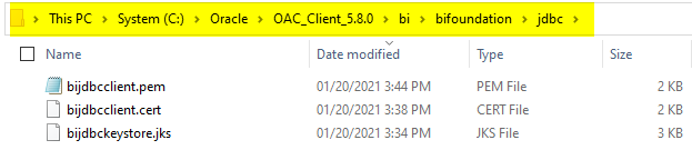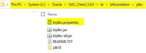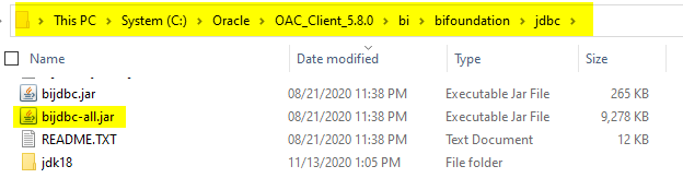 cd “C:\Oracle\OAC_Client_5.8.0\bi\bifoundation\jdbc”