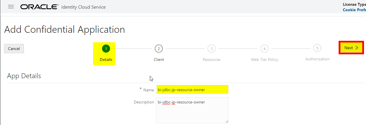 Specify a Name [i.e. bi-jdbc-jp-resource-owner] and description -> click Next