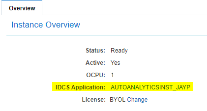 Far right click on 3 vertical dots -> Manage Instances -> Click on instance -> IDCS Application = Resource name