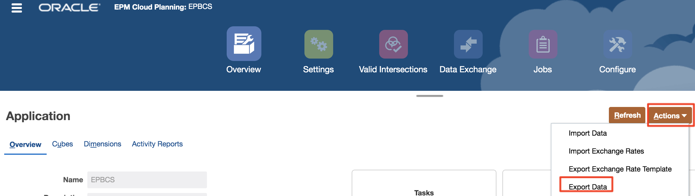 In order to have ODI extract data from EPM Cloud, and extract job needs to exist as a prerequisite. Follow the steps below to define an EPM Cloud data extract job.