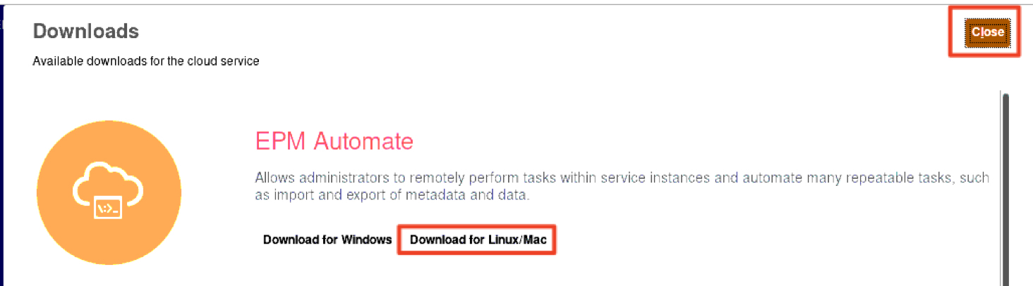 b) Select EPM Automate for Linux / Mac, download the file and close.