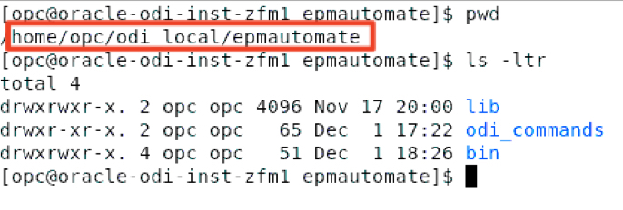 c) Copy the downloaded file in a convenient folder and unzip it, here under /home/opc/odi_local/epmautomate.