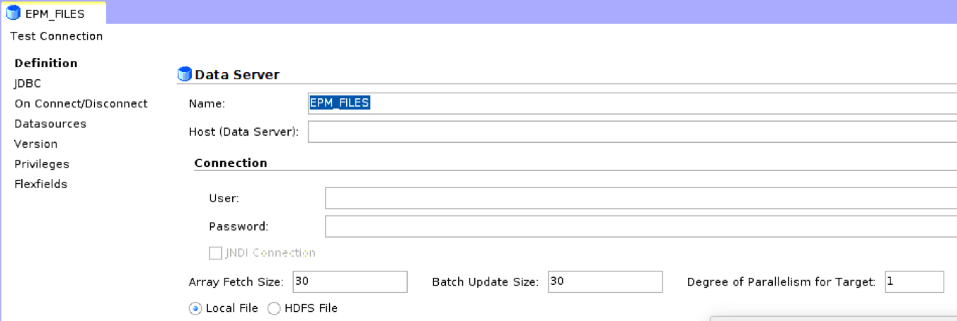 a) Create a new File Data Server and name it EPM_FILES. Save -> Test the connection.
