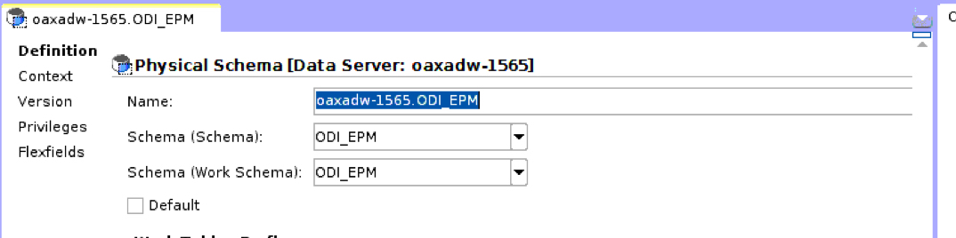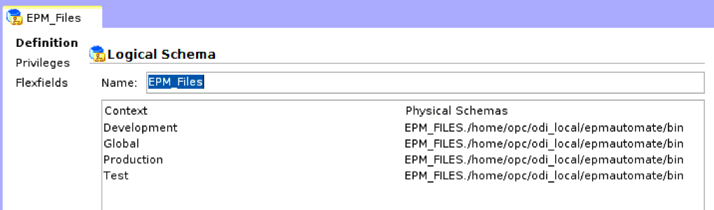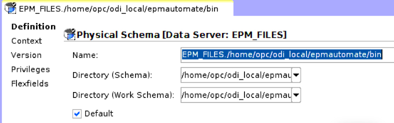 b) Create a Physical Schema and set the Schema and Work Schema to /home/opc/odi_local/epmautomate/bin
