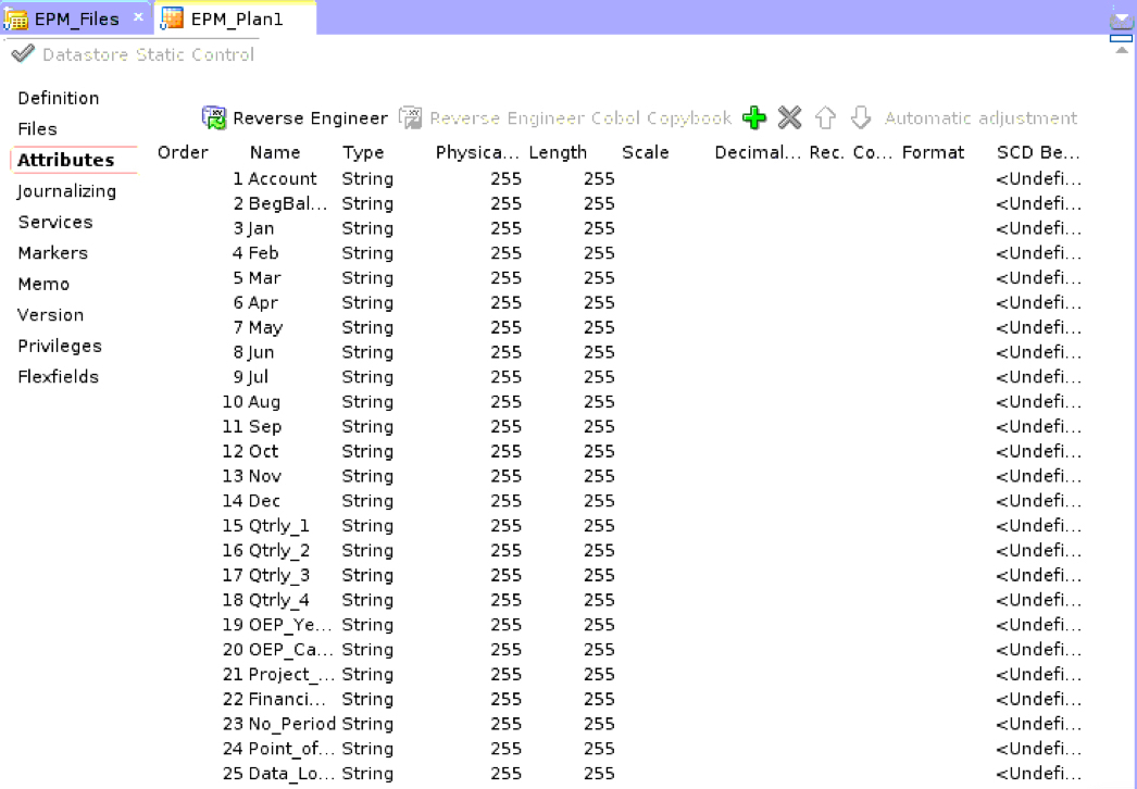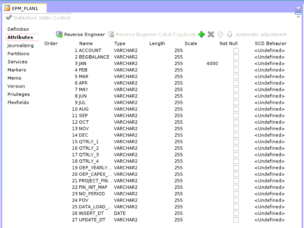 e) Click on Attributes > Reverse Engineer to create the datastore on the ADW diagram.