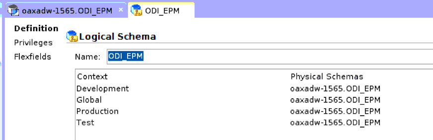 a) Create a new model using Topology defined as per the previous blog. Below are the figures for the physical, logical schemas and context mapping.