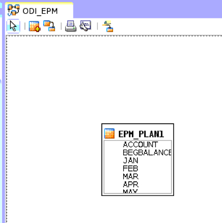 c) Create a new ADW diagram named ODI_EPM-> Drag and drop the EPM_Plan1 File datastore onto the diagram -> Click OK.