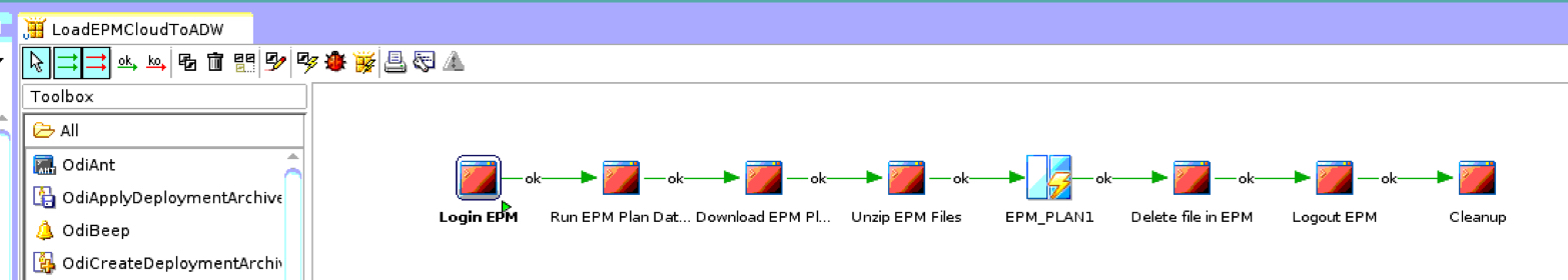 ODI will call EPM automate to download the EPM Extract ZIP file and decompress the EPM CSV extract files, merge them into one single CSV and load them in ADW