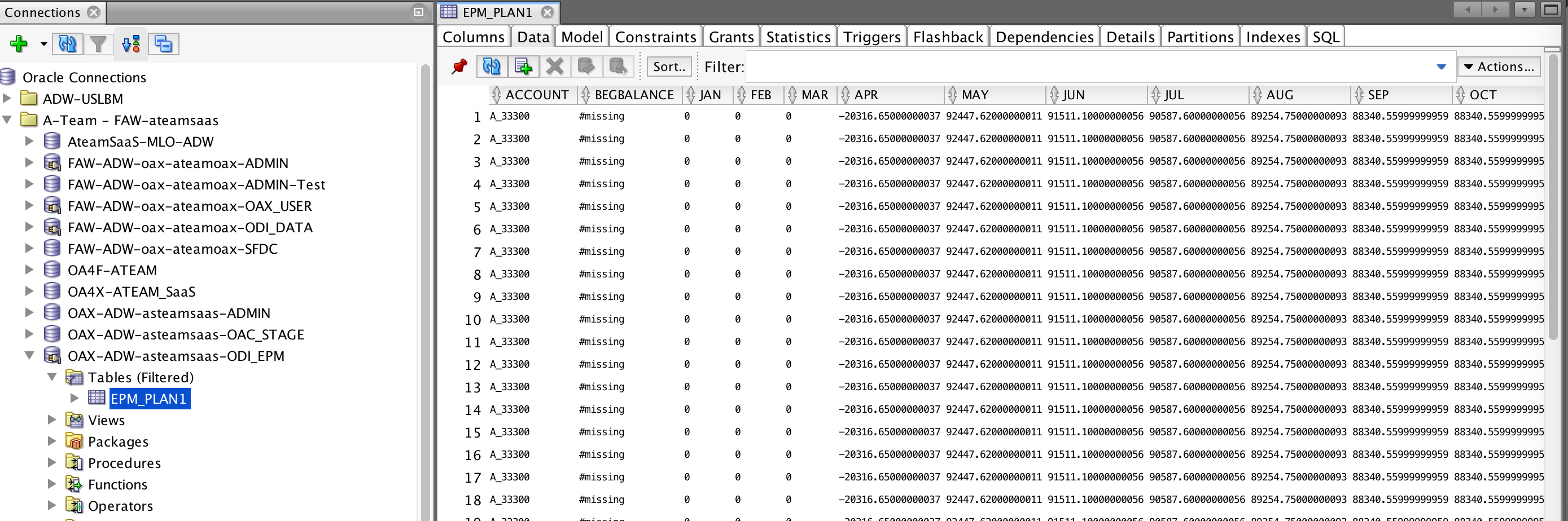 b) Verify the table has been created in ADW and that the EPM data was loaded