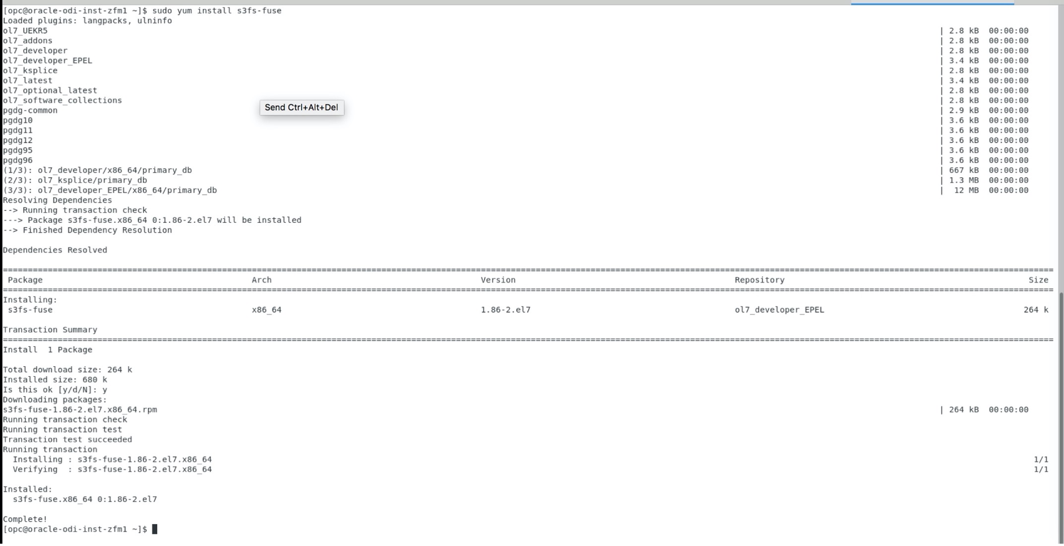 s3fs-fuse is being installed using yum so the installation required the ODI VM to have access to internet. To install s3fs-fuse, execute the following command