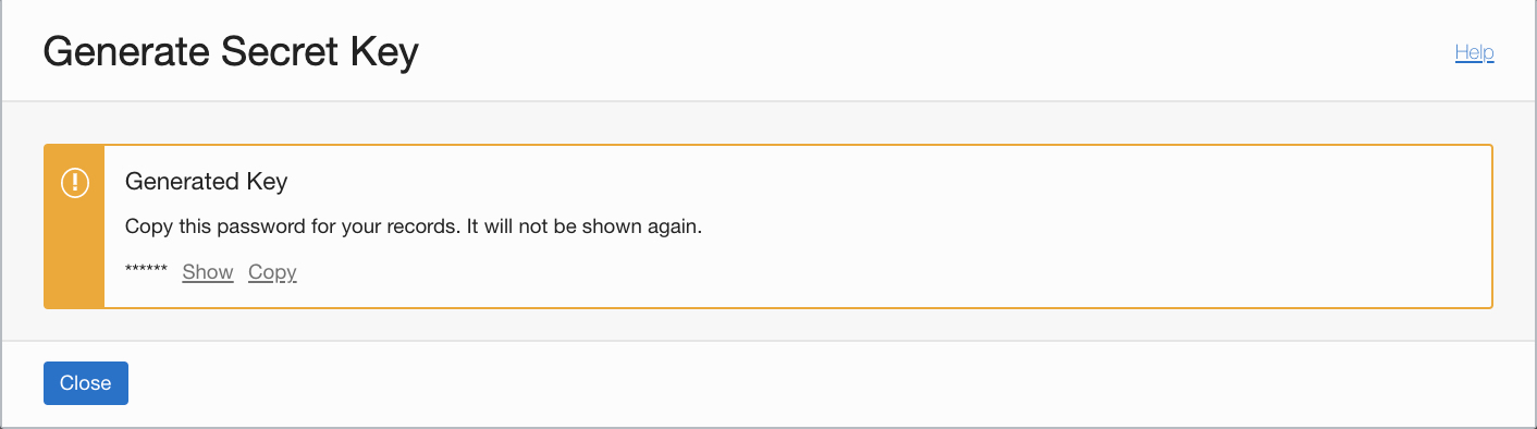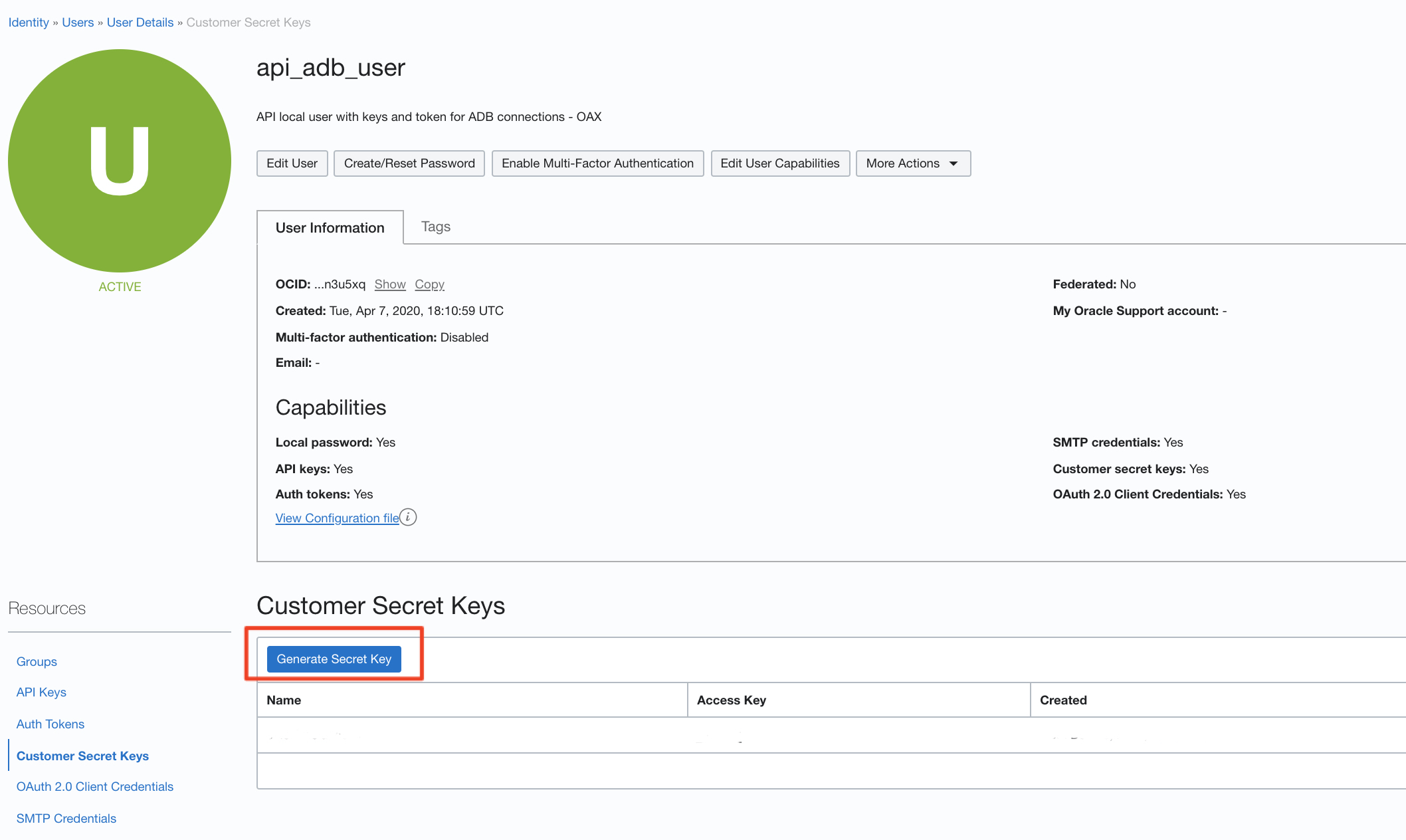 c) Access the OCI local user details, generate a secret key and save the secret key