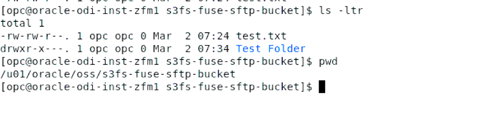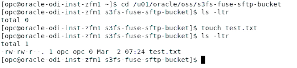 Setting up the SFTP Server using Object Storage Bucket mounted as a file system on the ODI VM