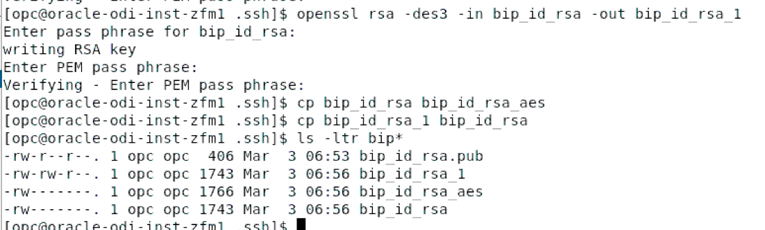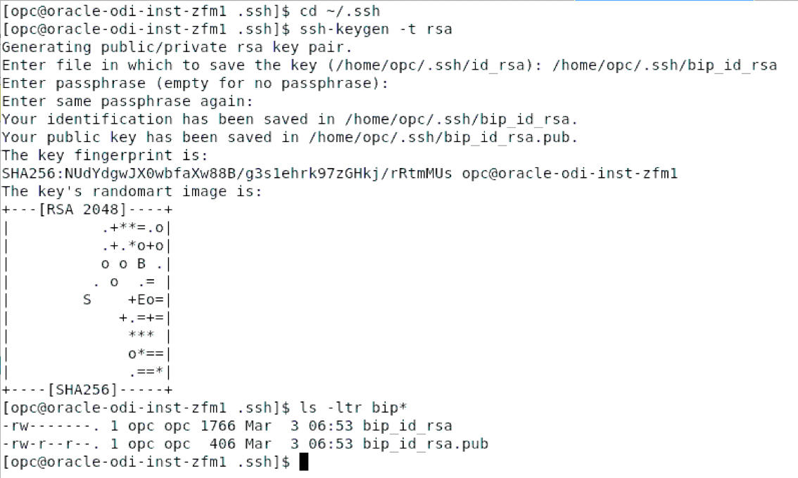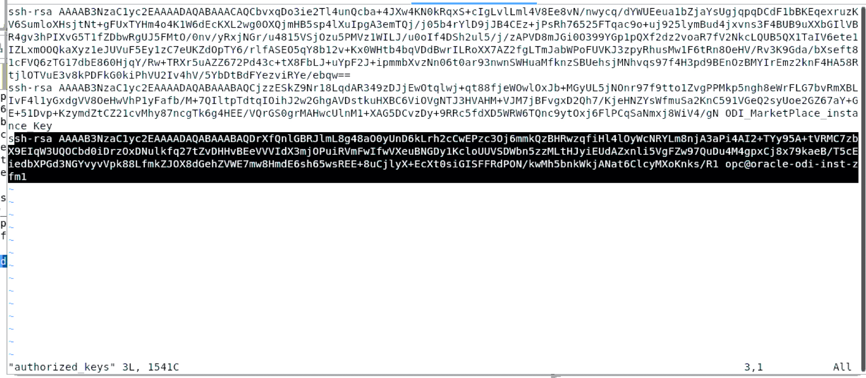 c) Update the authorized_keys file for opc user on the ODI VM to add the bip_id_rsa.pub public key for Fusion BIP Publisher