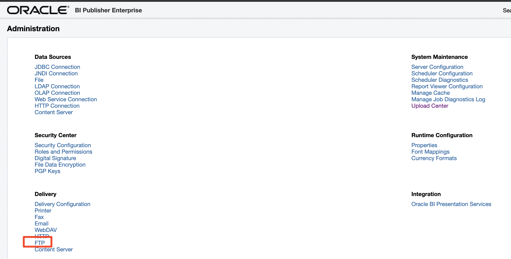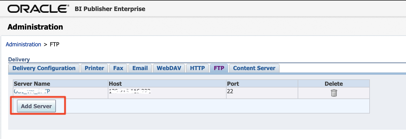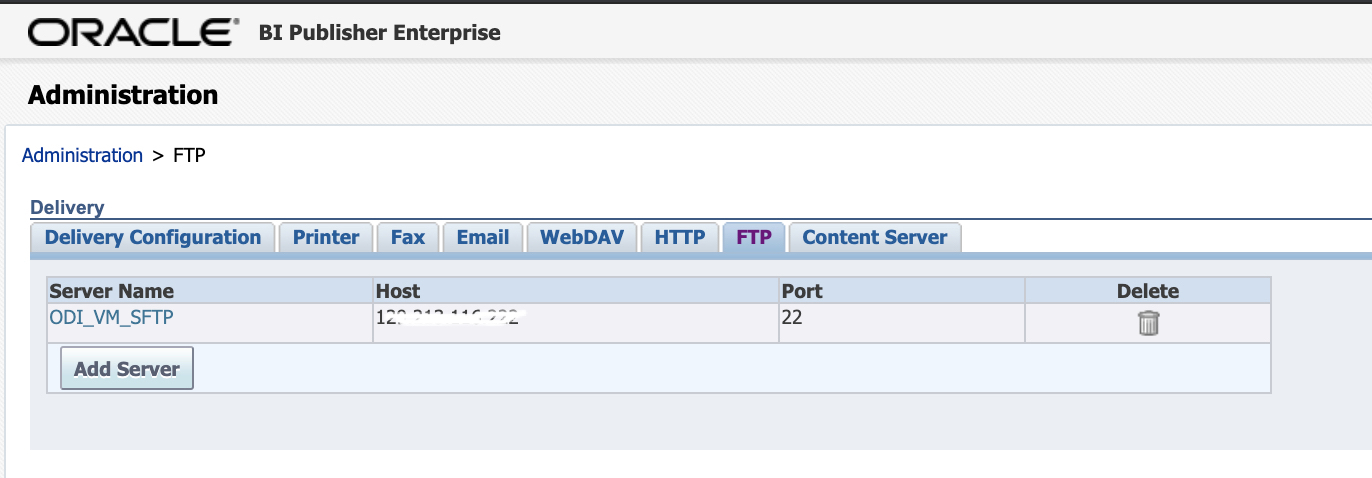 Validate the FTP Delivery server is added in the BI Publisher configuration