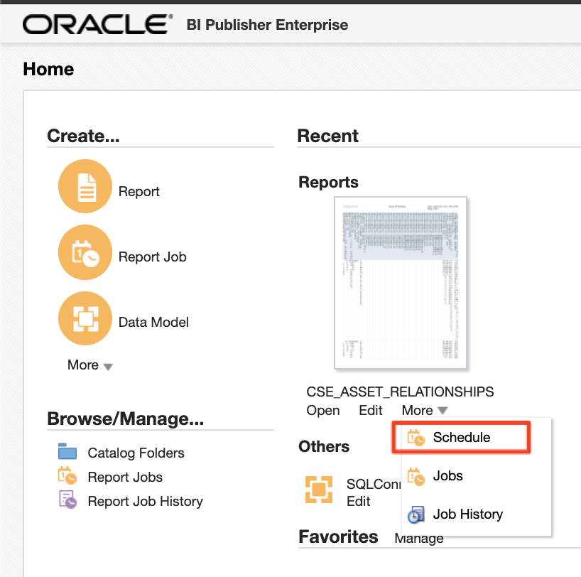 a) Connect to Fusion BI Publisher and Schedule a Report Job for an existing report