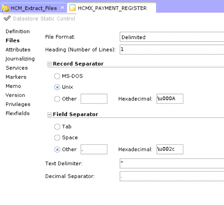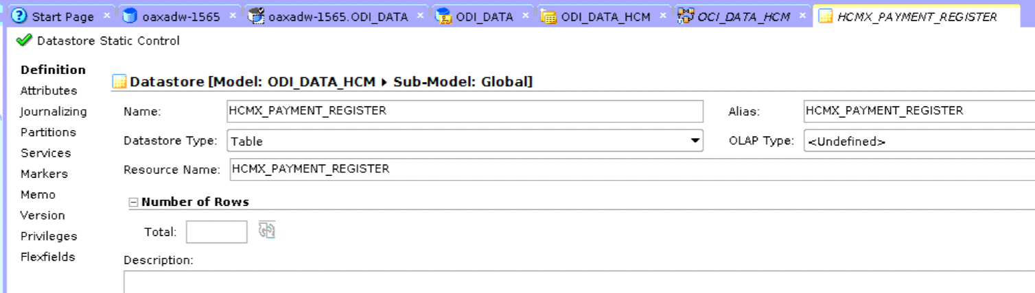 In the Part 2 – Blog, the HCM Extract generate a CSV file named HCMX_PAYMENT_REGISTER.csv in /u01/oracle/oss/s3fs-fuse-sftp-bucket. Follow the steps below to create the ODI Model and Data Store to that the HCM Extract file can be mapped as a source in ODI.