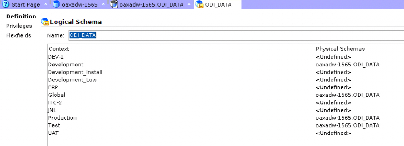 a) Reuse the existing model from Topology defined as per the previous blog. Below are the figures for the physical, logical schemas and context mapping.