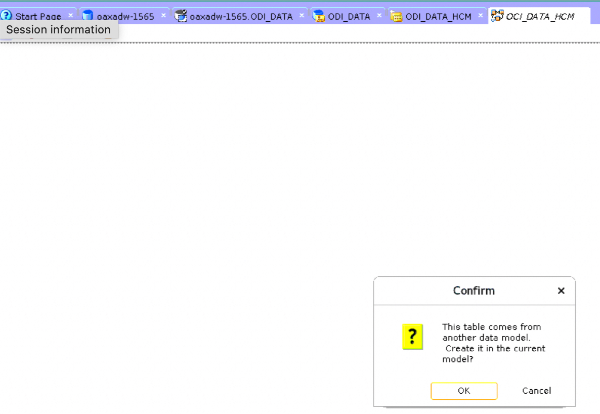 c) Create a new ADW diagram named ODI_DATA_HCM-> Drag and drop the HCMX_PAYMENT_REGISTER File datastore onto the diagram -> Click OK.