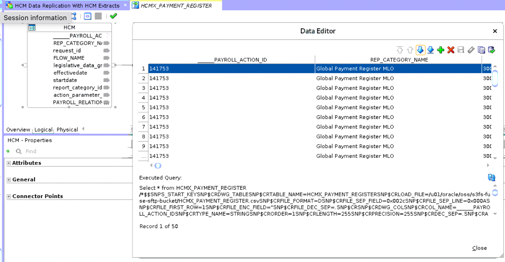 f) Click on Logical and View the data on HCMX_PAYMENT_REGISTER source. Save the mapping.