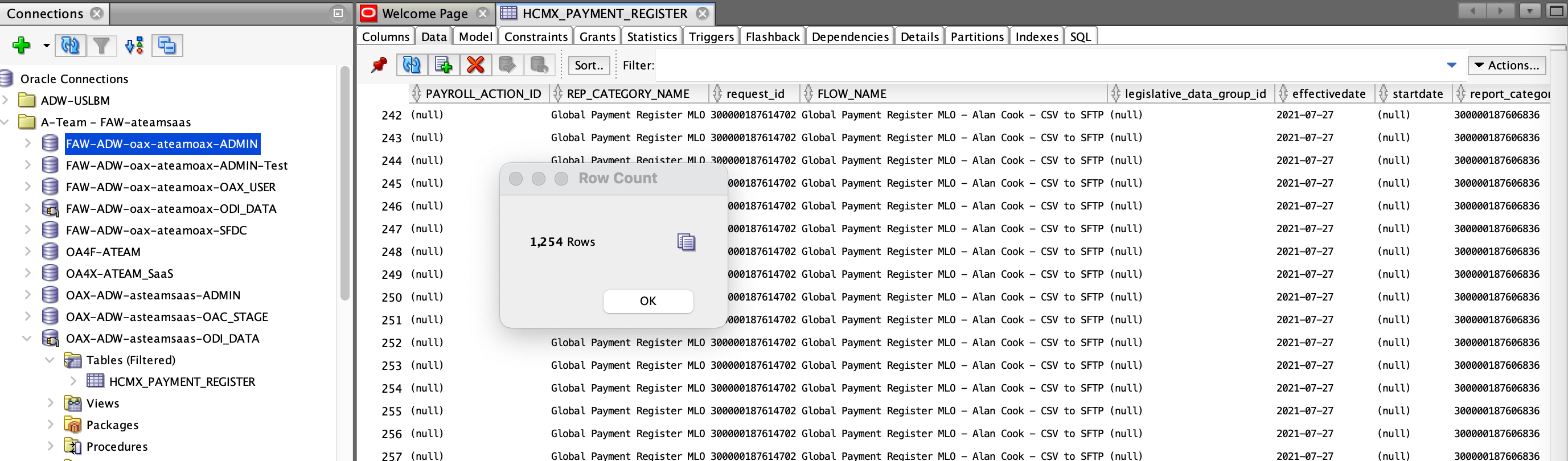 b) Verify the table has been created in ADW and that the HCM Extract data was loaded