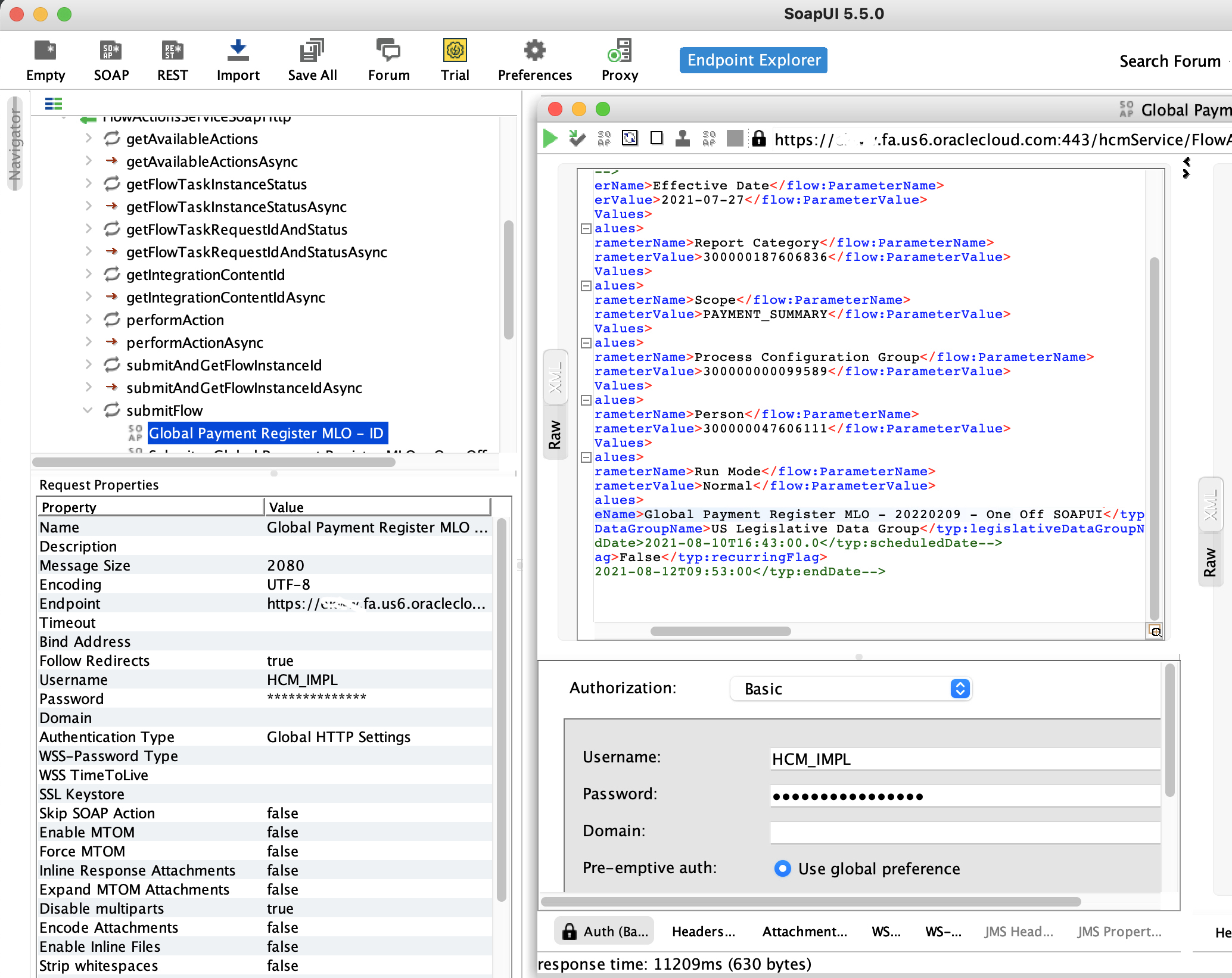Now that the parameter ID values have been collected, you can use a SOAP client such has SOAPUI to build the request payload that will then be used for scheduling the HCM Extract.