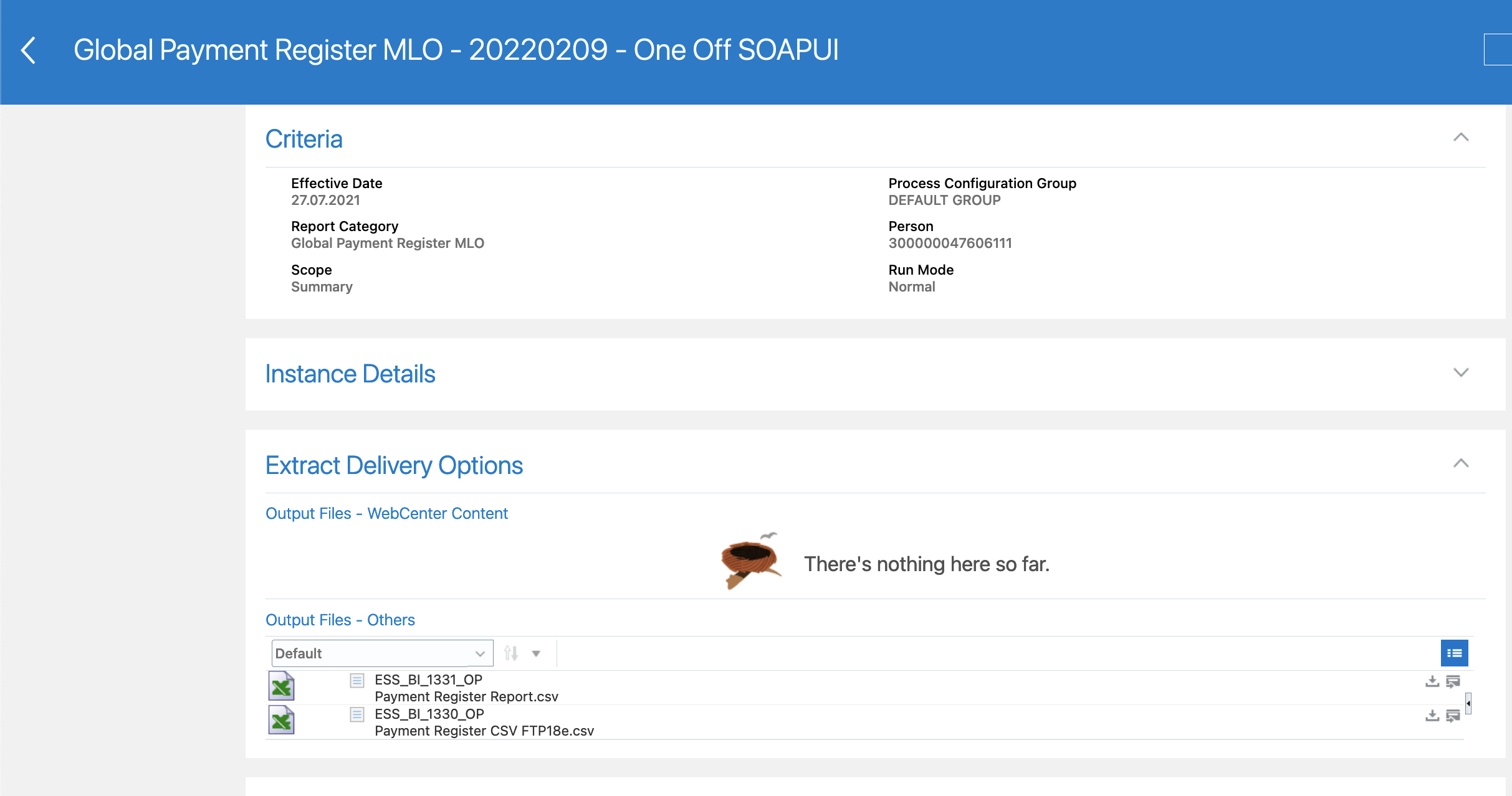 When running the HCM Extract using the SOAP endpoint method, the parameters being passed need to be mostly IDs (except for Dates parameters). In order to get these IDs, we can run the HCM Extract manually from the Fusion Application user interface and use a simple BI Publisher report to get the parameters ID values. There is also an approach (not covered in this blog) that leverages the HCM REST APIs to get the parameters details of a certain HCM Extract Flow and there are described here.