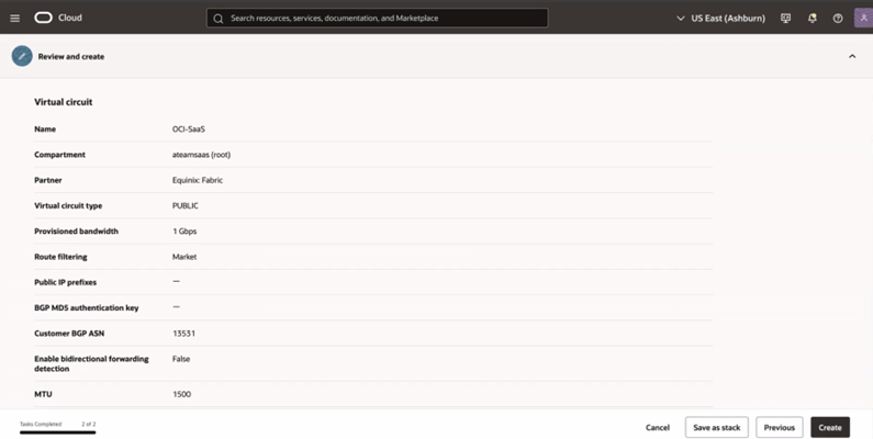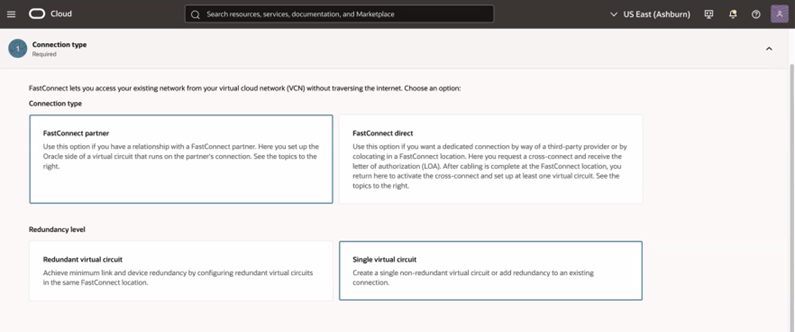 1. Navigate to Networking → FastConnect → Create Connection.