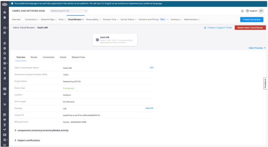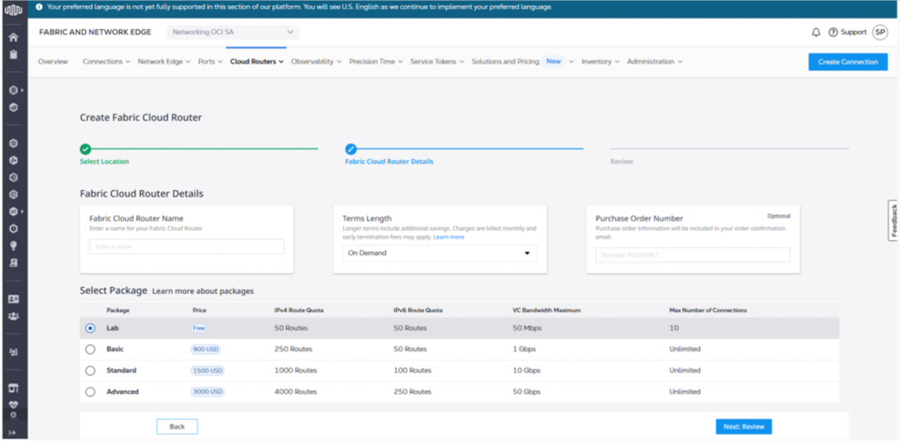 1. In Equinix Fabric console, navigate to Network Edge → Fabric Router