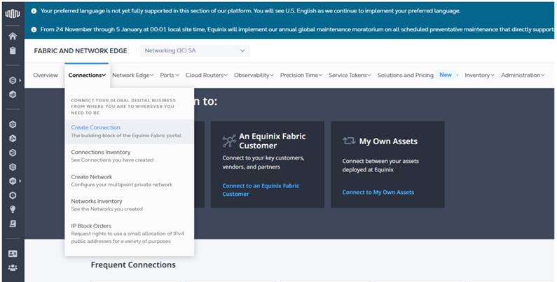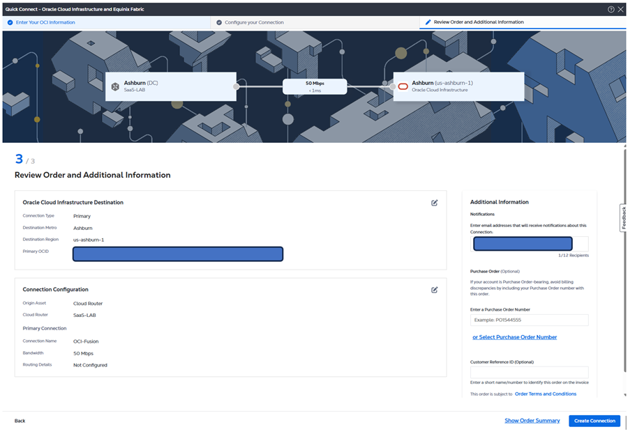 3. Create Equinix Connections to OCI in Equinix Console