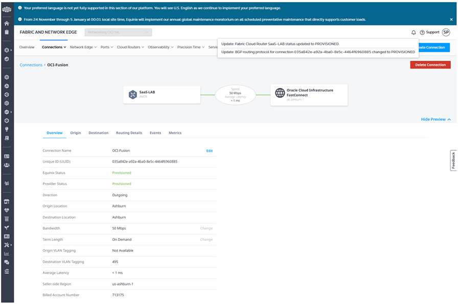 Equinix end status will change to Provisioned.