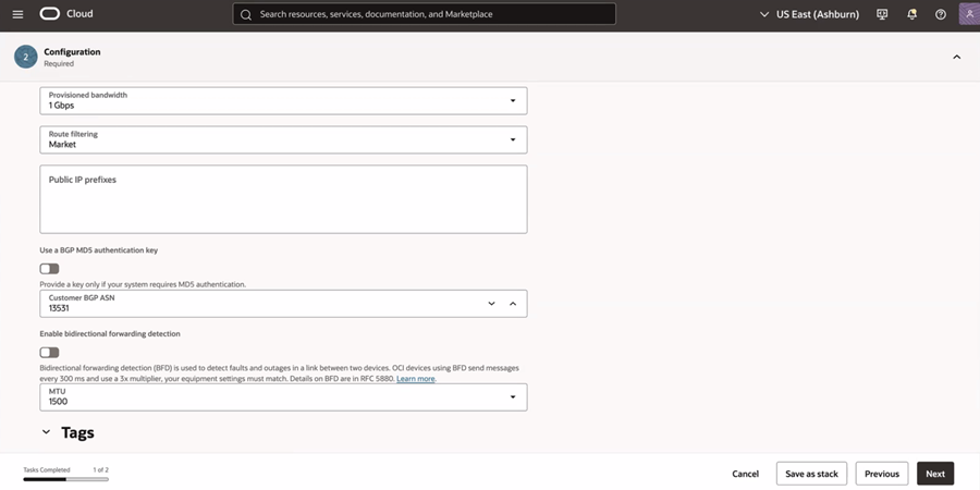 • Configure Peer ASN 31898 (OCI ASN).