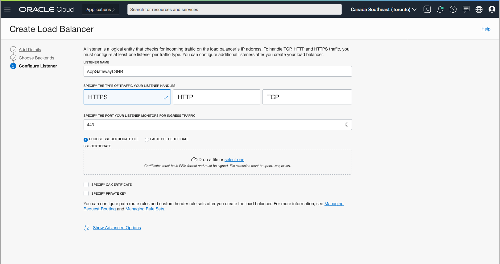 Now let’s configure a Listener. In production we recommend that you setup HTTPS; so you will need import a certificate.