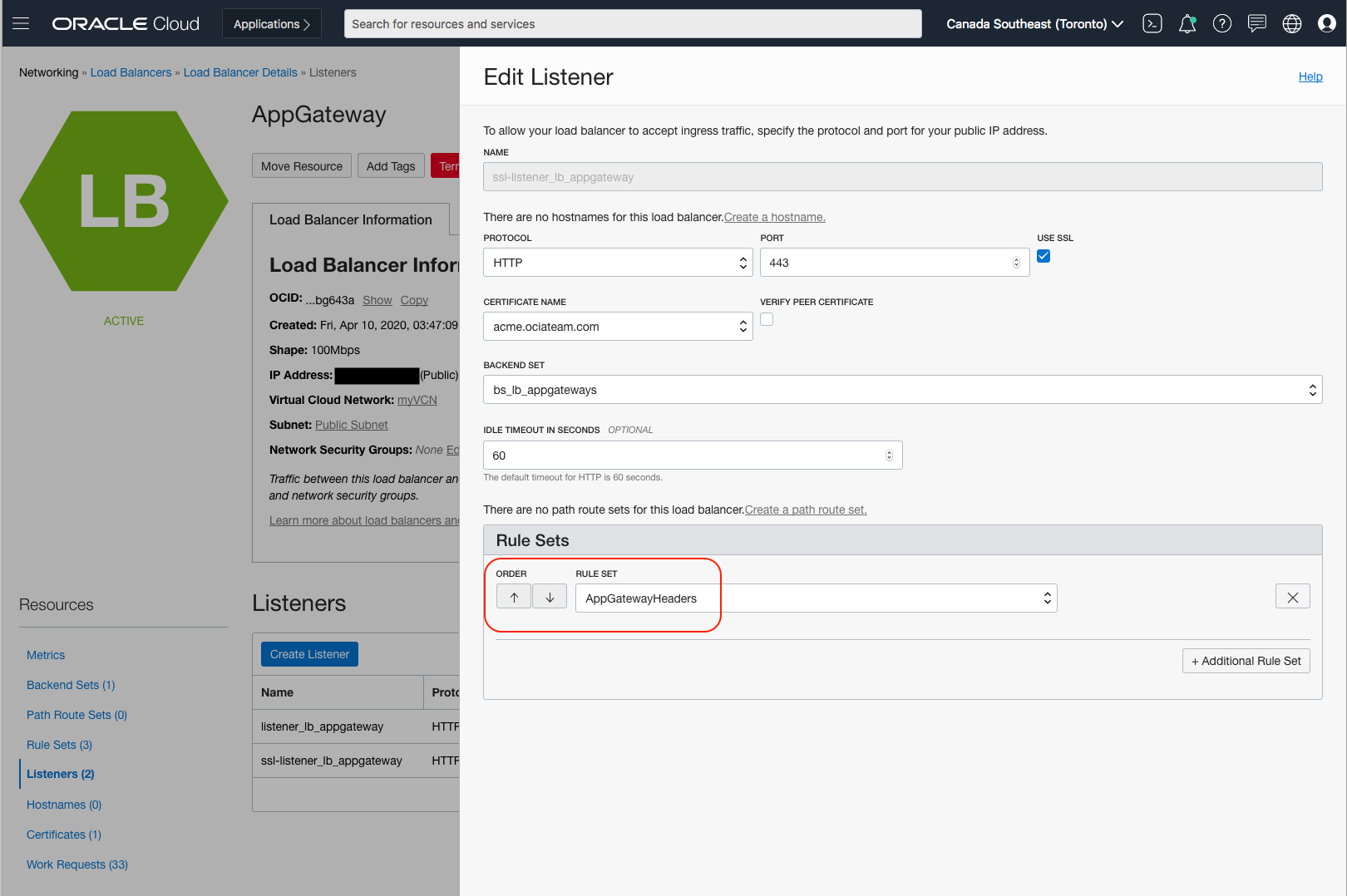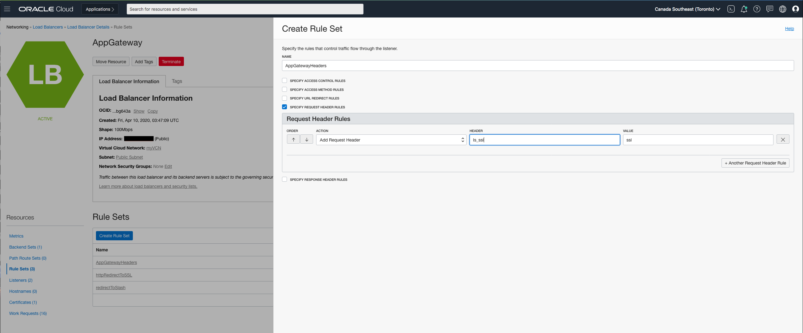 Now let’s add the Rule Set to the Listener. For every request coming from the LBR, a header ‘is_ssl’ will be passed to the App Gateway.