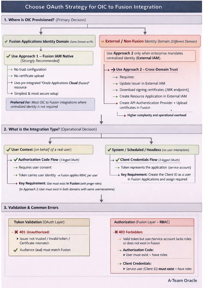 Most OAuth complexity in OIC to Fusion integrations does not come from OAuth itself, but from choosing the wrong identity architecture.