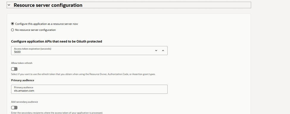 The aud condition must match what you configured in the OCI resource server.
