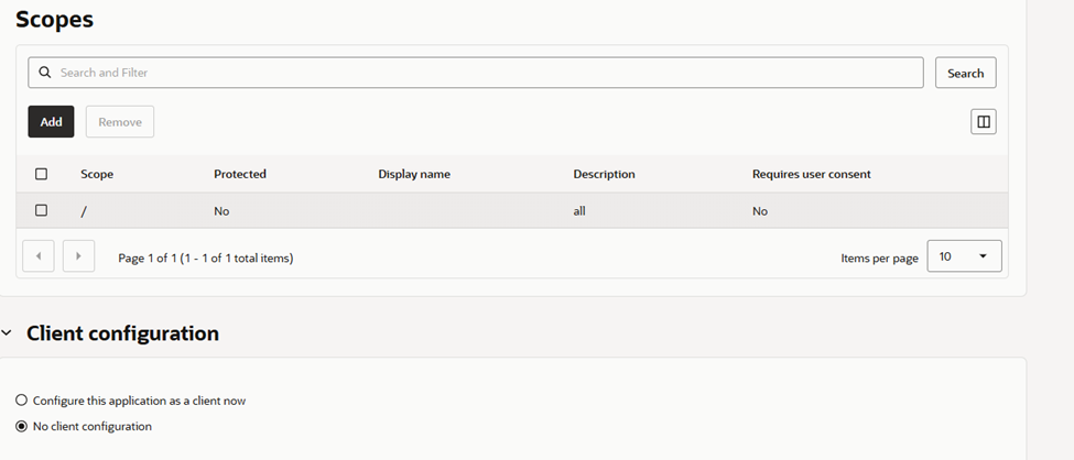 - Go to OAuth Client Configuration -> click Edit OAuth configuration -> Configure this application as a client now